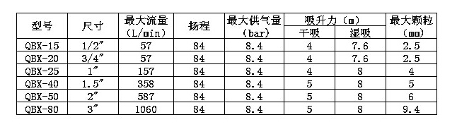 3、揚程、流量可通過氣閥開度實現無級調節(氣壓調節在3-8.4 bar之間);