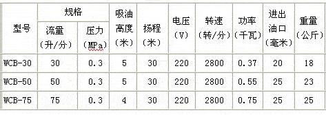 WCB手提式齒輪泵(普通型、不銹鋼型):WCB手提式齒輪泵屬于低壓力微型手提式節(jié)能輸油泵,適用于無(wú)動(dòng)力電源的出售單位油桶軸油,也適用于煉油廠、電廠、電站、變電所(室)及油庫(kù)輸油。稀油潤(rùn)滑系統(tǒng)的稀油轉(zhuǎn)運(yùn)。如:輸送無(wú)潤(rùn)滑性的油料、飲料、低腐蝕性的水等,請(qǐng)選用整體不銹鋼齒輪泵。 *技術(shù)參數(shù):流量:30-75L/min輸送高度:30m重量:17-21kg驅(qū)動(dòng)功率:370-750w使用電源:220V。