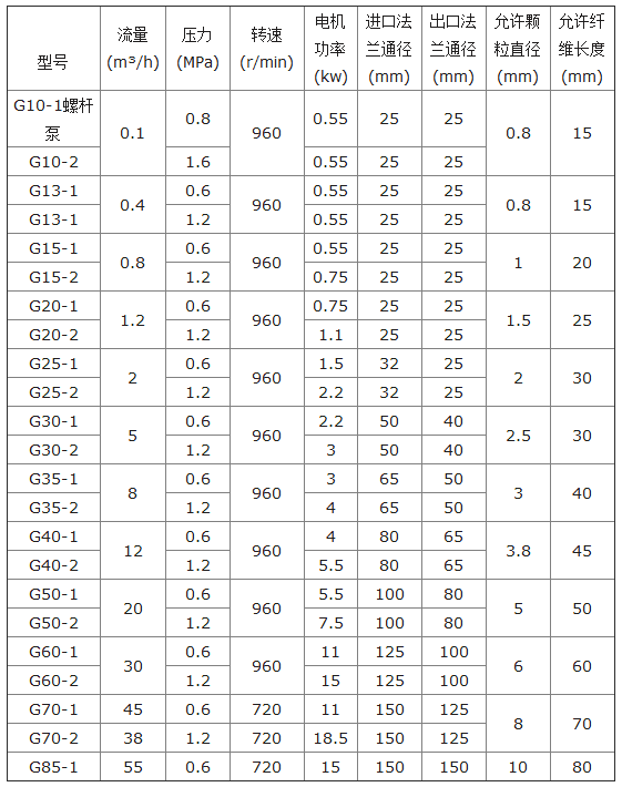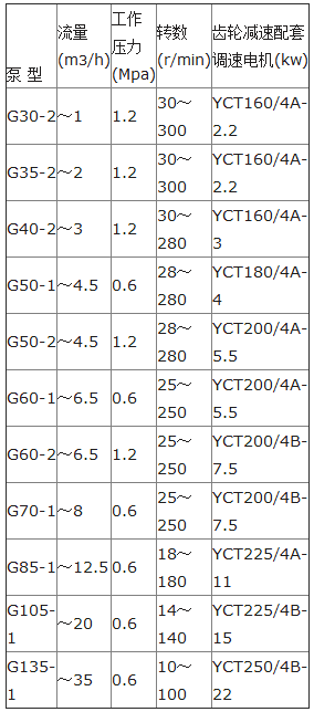 G10-1單螺桿泵是按迥轉嚙合容積式原理工作的新型泵種,主要工作部件是偏心螺桿(轉子)和固定的襯套(定子)。 由于該二部件的 殊幾何形狀,分別形成單 的密封容腔,介質由軸向均勻推行流動,內部流速低,容積保持不變,壓力穩定,因而不會產生渦流和攪動。每級泵的輸出壓力為0.6MPa,揚程60m(清水),自吸高度一般在6m,適用于輸送介質溫度80℃以下( 殊要求可達150℃)。