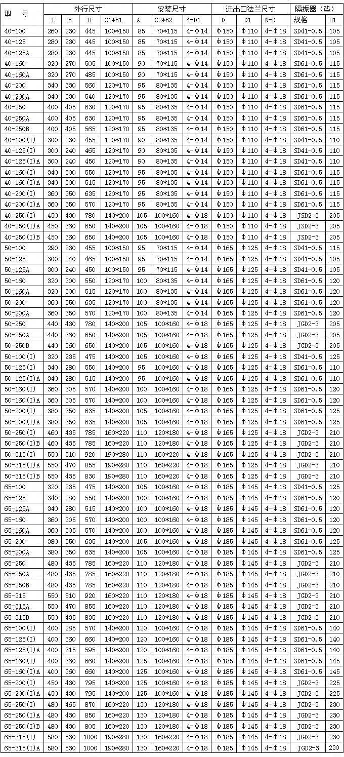 ISG、IRG、GRG、YG、IHG、IHGB型立式管道離心泵性能參數