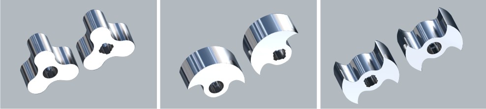 LQ系列轉子泵又稱膠體泵,三葉泵,鞋底泵等。依靠兩同步反向轉動的轉子(齒數為2-4)在旋轉過程中于進口處產生吸力(真空度),從而吸入所要輸送的物料。兩轉子將轉子室分隔成幾個小空間,并按a→b→c→d的次序運轉。運轉至位置a時,只有I室中充滿介質; 到位置b時,B室中封閉了部分介質; 到位置c時,A室中也封閉了介質; 到位置d時,A、B室與Ⅱ室相通,介質即被輸送至出料口。如此循環往復,介質(物料)即被 地輸送出。